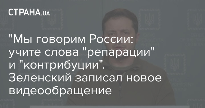 "Мы говорим России: учите слова "репарации" и "контрибуции". Зеленский записал новое видеообращение