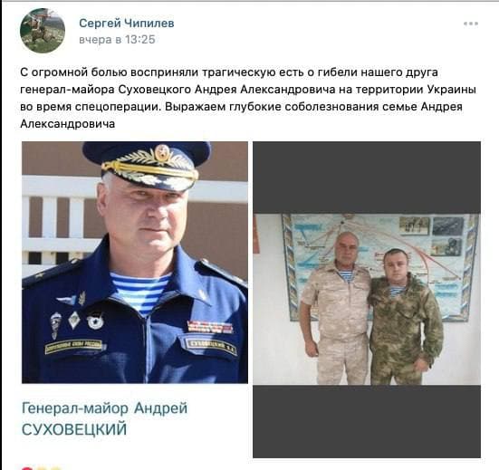 На войне в Украине погиб командир российской десантно-штурмовой дивизии генерал-майор Суховецкий