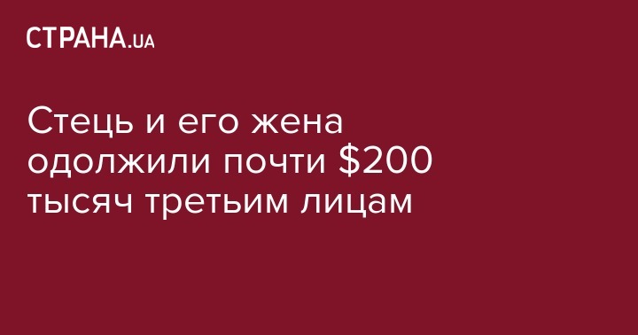 Стець и его жена одолжили почти $200 тысяч третьим лицам