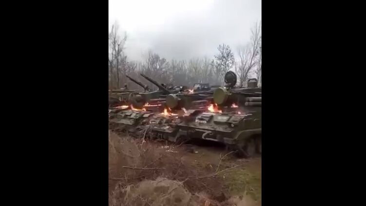 Сожженные под Николаевом танки российских оккупантов. Скриншот с видео