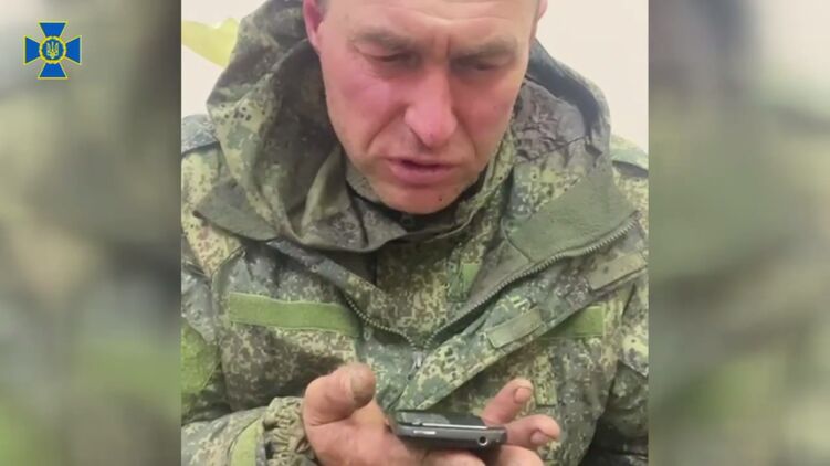 Пленный российский офицер говорит по телефону с родными. Фото: скриншот из видео