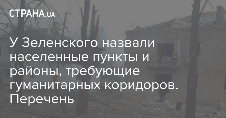 У Зеленского назвали населенные пункты и районы, требующие гуманитарных коридоров. Перечень