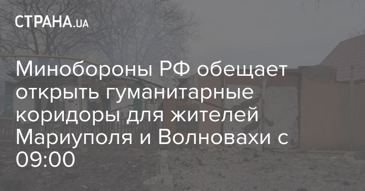 Минобороны России с 09:00 по киевскому времени открывает гуманитарные коридоры для жителей Мариуполя и Волновахи.