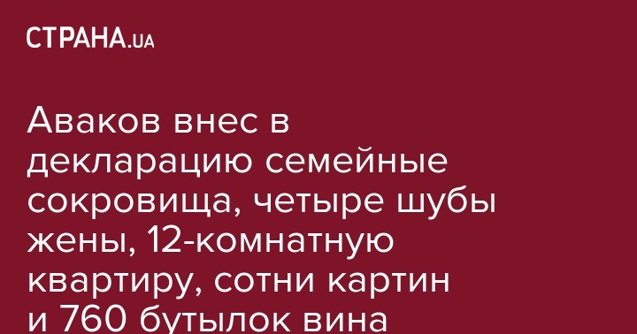Аваков внес в декларацию семейные сокровища, четыре шубы жены, 12-комнатную квартиру, сотни картин и 760 бутылок вина