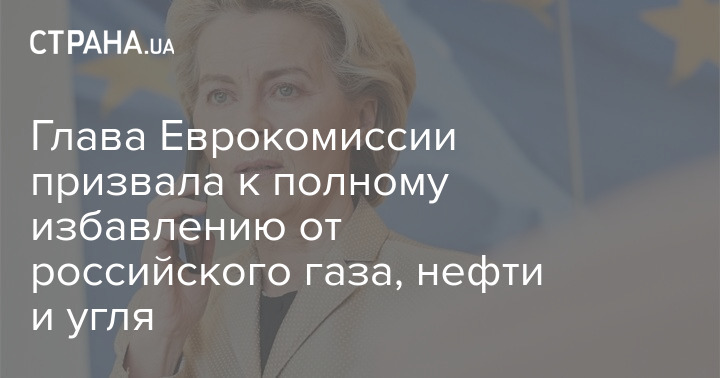 Председатель Еврокомиссии Урсула фон дер Ляйен заявила, что Евросоюз должен полностью избавиться от газовой, нефтяной и угольной зависимости от Российской Федерации путем диверсификации, энергоэффективности и энергоперехода.