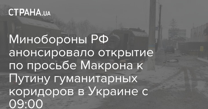 Министерство обороны РФ заявило, что сегодня с 10:00 (09:00 по киевскому времени) российская сторона объявляет режим тишины и открывает гуманитарные коридоры в Украине.