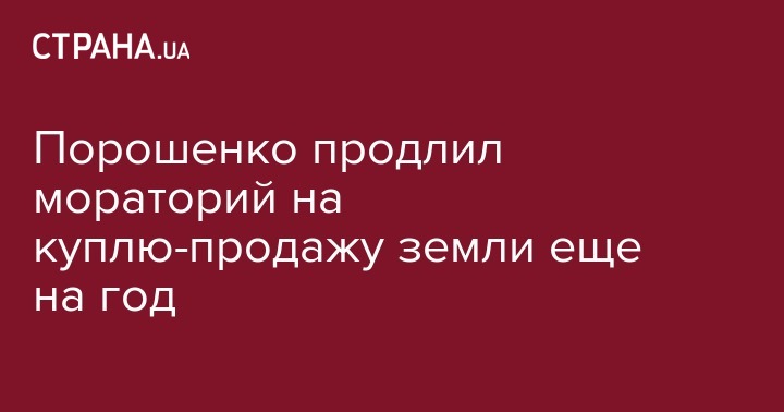 Президент Петр Порошенко подписал закон о продлении до 2018 года моратория на продажу земель сельскохозяйственного назначения в Украине, принятый Верховной Радой Украины 6 октября 2016 года, сообщает пресс-служба главы государства.