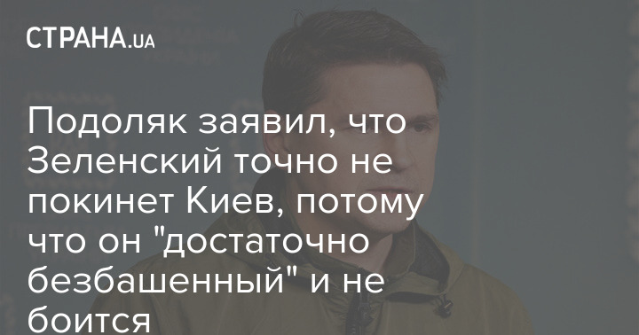 Советник главы офиса президента Украины Михаил Подоляк заявил, что Владимир Зеленский точно не покинет Киев, потому что он "достаточно безбашенный" и не боится.