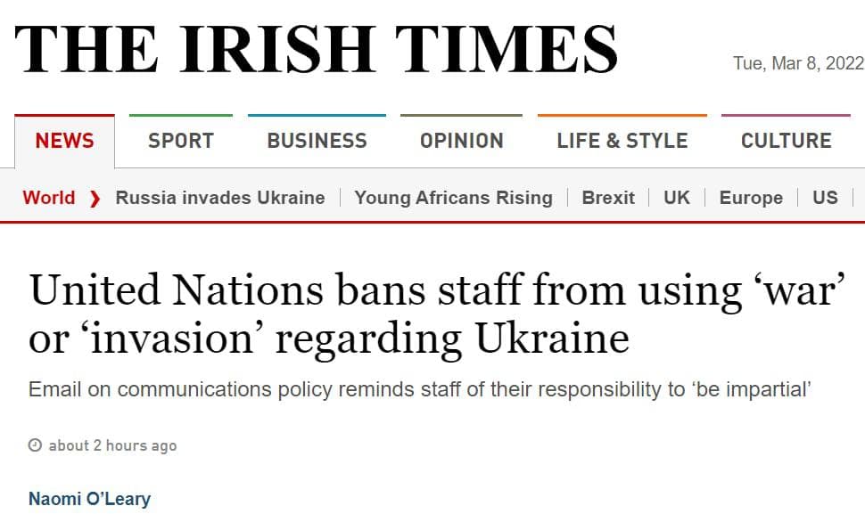 Дюжаррик сказал, что сотрудников "просят формулировать любые сообщения по Украине, таким образом, чтобы это соответствовало позиции организации и заявлениям генерального секретаря".