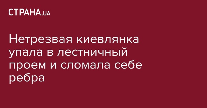 Сообщается, что 19-летняя девушка выпила алкоголь, а затем вышла из квартиры и упала в пролет лестницы с третьего этажа. Она была доставлена множественными травмами в отделение одной из киевских больниц. Врачи диагностировали у пострадавшей сотрясение головного мозга, перелома ребер и закрытую травму грудной клетки.