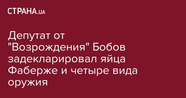 Депутат от "Возрождения" Бобов задекларировал яйца Фаберже и четыре вида оружия