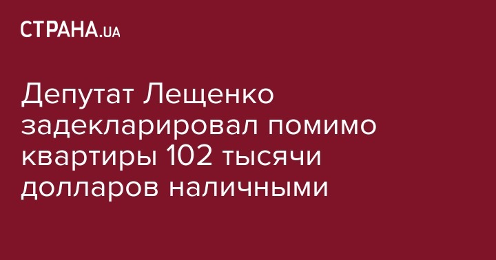 Депутат Лещенко задекларировал помимо квартиры 102 тысячи долларов наличными
