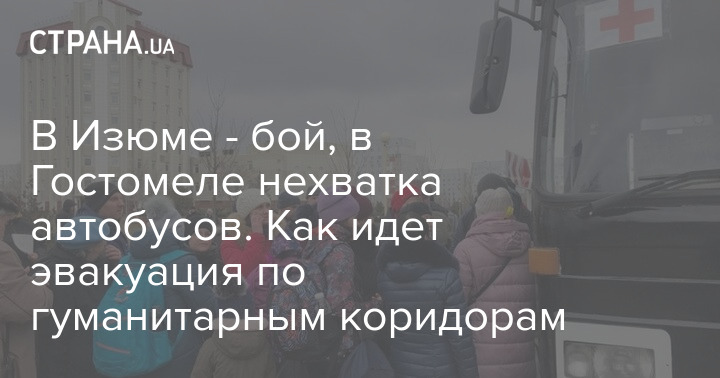"Сегодня в Изюме идет бой, автобусы ждут на подъезде. В Гостомеле людей эвакуируют понемногу, но автобусов не хватает. Там 32 автобуса всего. Говорю россиянам, чтобы дали возможность выезжать людям на частных авто. Россияне вроде бы согласны, но бывало, что разрешали, а на практике - нет", - сообщила "Стране" Верещук.