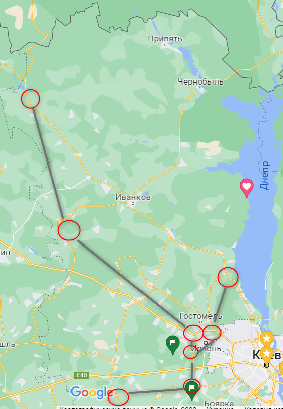 1. На северо-западе от Киева противник закрепился в населенных пунктах Полесское, Кухари, Бородянка, Андреевка, Мотыжин, Гореничи, Буча и Демидов.