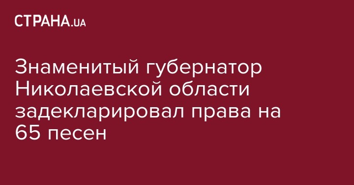 Председатель Николаевской областной государственной администрации Алексей Савченко указал в своей электронной декларации авторские права на 65 песен и музыкальных произведений. Об этом свидетельствуют его данные в Едином государственном реестре деклараций лиц, уполномоченных на исполнение функций государства или местного самоуправления.