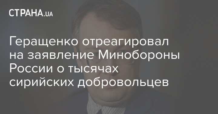 Геращенко отреагировал на заявление Минобороны России о тысячах сирийских добровольцев
