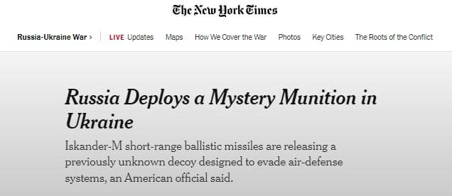 09.26 Американская разведка заявила, что баллистические ракеты "Искандер", которые Россия запускает по Украине, содержат обманки, которые позволяют обходить противовоздушную оборону и давать ложные данные ракетам теплового поиска.