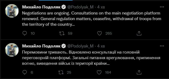 21.38 Переговоры Украины и России завершились, они продолжатся завтра.