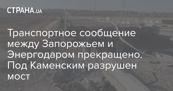 Транспортное сообщение между Запорожьем и Энергодаром прекращено. Уничтожен мост в районе Каменского.