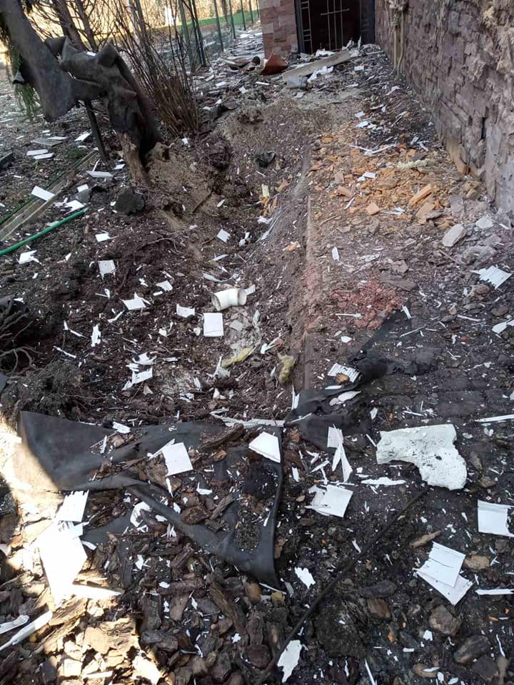На опубликованных фото видно повреждение стены дома и кондиционеров, а также выбитые взрывом оконные стекла.