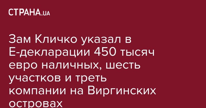 Зам Кличко указал в Е-декларации 450 тысяч евро наличных, шесть участков и треть компании на Виргинских островах