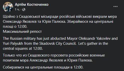 Также сегодня удалось освободить из плена мэра Мелитополя Ивана Федорова.