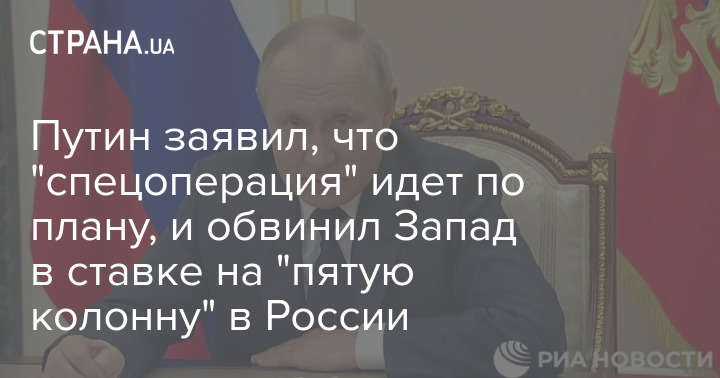 Кроме того, президент РФ повторил тезисы, что Россия не собирается оккупировать Украину. И что "спецоперация" идёт по плану" и ее цели будут выполнены.