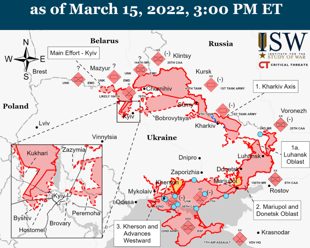 В целом карта боевых действий выглядит следующим образом (данные за 15 марта):
