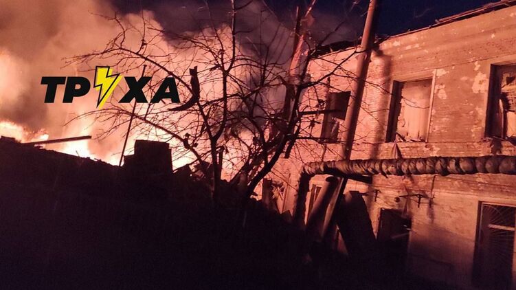 После удара по школе в Мерефе начался масштабный пожар, очевидцы публикуют видео:
