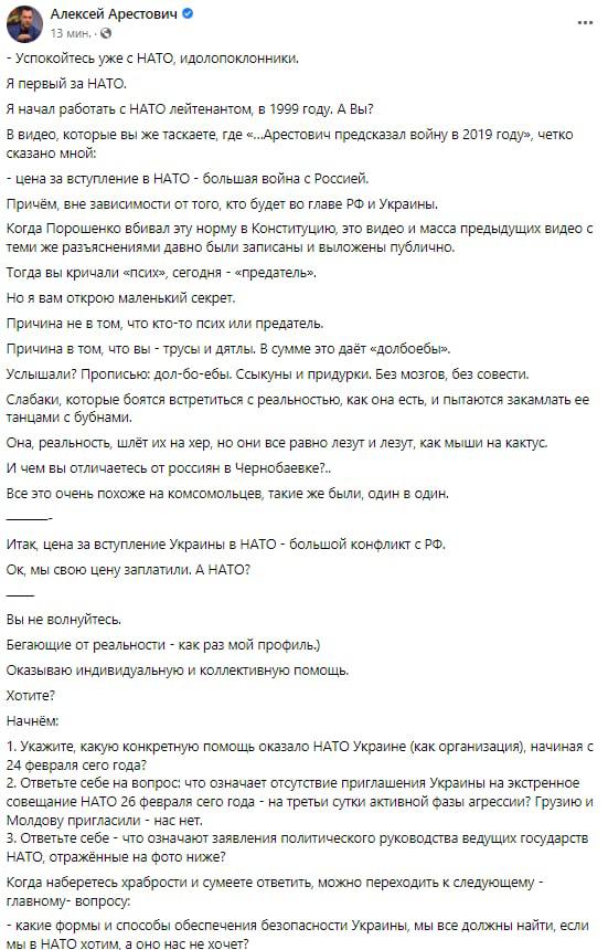 11.38 Новая сводка от Арестовича. Говорит, что задействованы "все возможные и невозможные" международные механизмы для деблокирования Мариуполя.