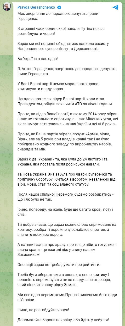 - "Несмотря на то, что мы полностью отвергаем войну России против Украины, кейс России должен быть услышан, потому что после этой войны между Россией и западным блоком должна быть установлена новая архитектура безопасности".