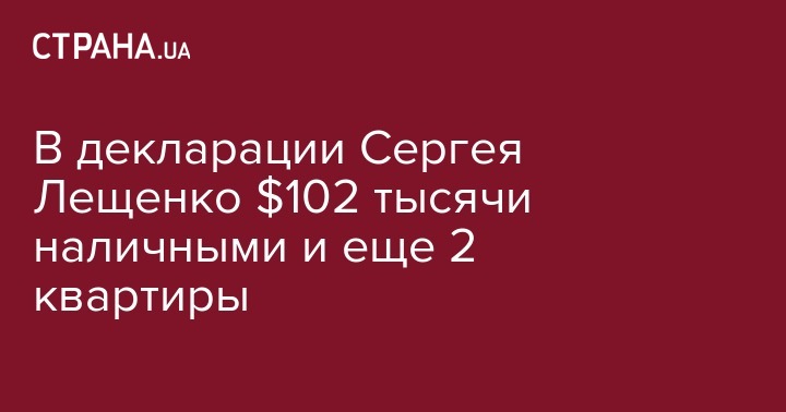 Народный депутат от БПП Сергей Лещенко задекларировал 102 000 долларов и 50 700 евро наличности.
