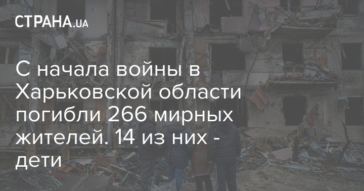 С начала полномасштабного вторжения России в Украину на территории Харьковской области погибло по меньшей мере 266 гражданских, из которых 14 - дети.