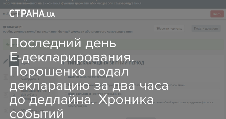 Последний день Е-декларирования. Порошенко подал декларацию за два часа до дедлайна. Хроника событий