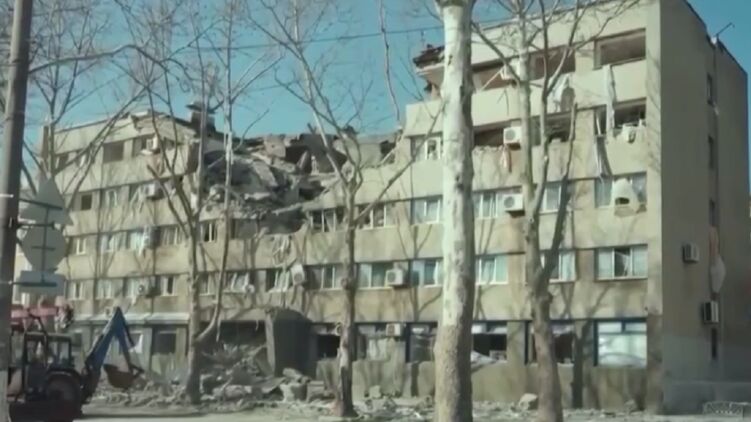 На кадрах видны катастрофические разрушения. Часть здания полностью уничтожена.