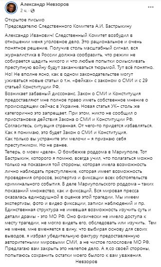 23.12 Невзоров, которого в России хотят привлечь к уголовной ответственности за «дискредитацию российской армии», сейчас находится в Израиле.