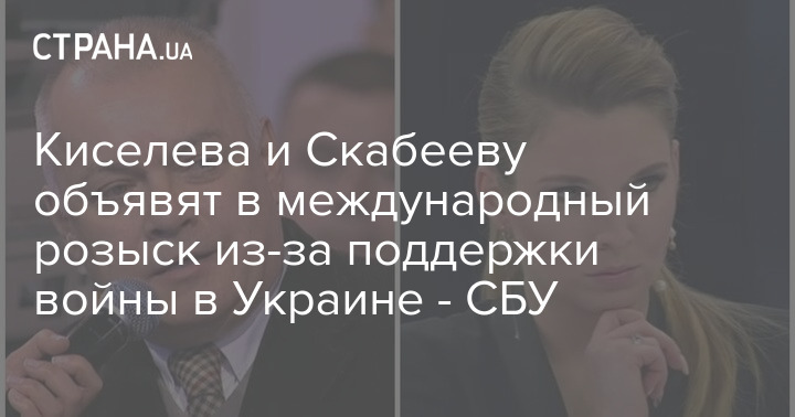 Киселева и Скабееву объявят в международный розыск из-за поддержки войны в Украине - СБУ