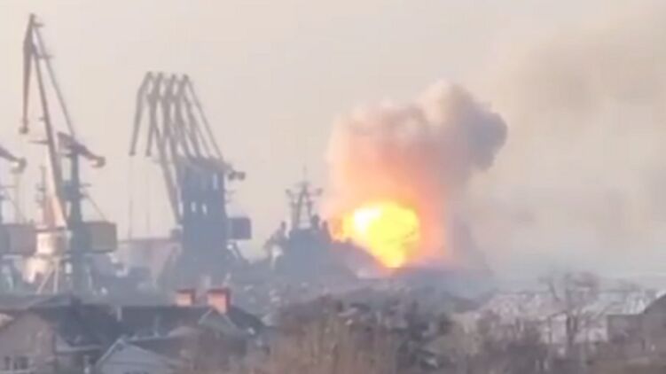 Появилось видео поражения российского десантного корабля "Орск" в порту Бердянска