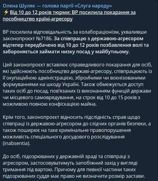 В УК Украины усилено наказание за пособничество государству-агрессору. Максимальный срок - 12 лет