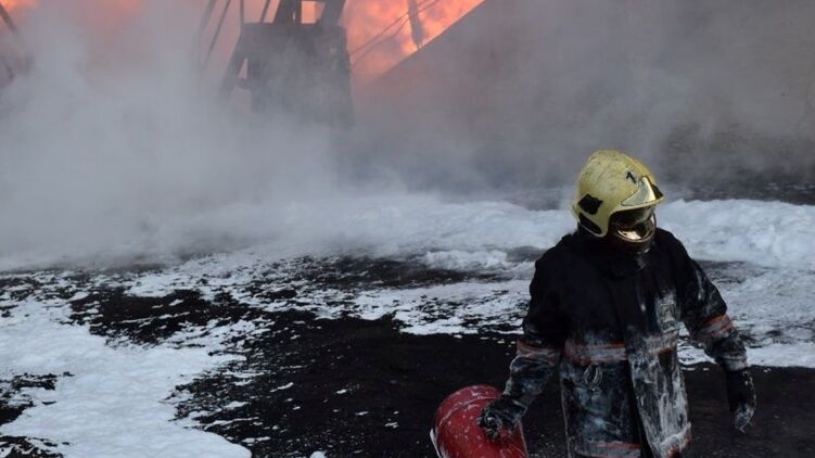 Удар по хранилищу произошел в 21:05 понедельника.Тушение длится уже более десяти часов.