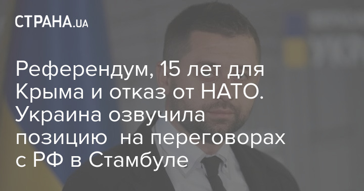 Референдум, 15 лет для Крыма и отказ от НАТО. Украина озвучила позицию на переговорах с РФ в Стамбуле