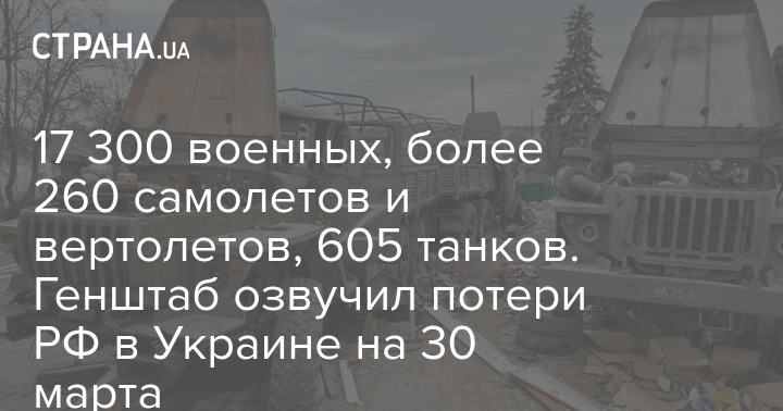 В Генштабе ВСУ обновили информацию относительно потерь вражеской российской армии за время войны с 24 февраля по 30 марта.