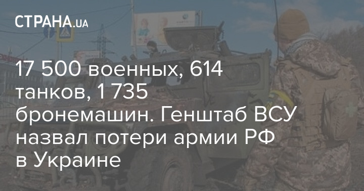 17 500 военных, 614 танков, 1 735 бронемашин. Генштаб ВСУ назвал потери армии РФ в Украине