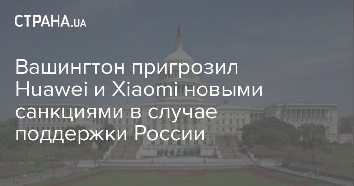 Вашингтон пригрозил китайским корпорациям Huawei и Xiaomi новыми санкциями, если они будут оказывать поддержку России в сфере телекома.