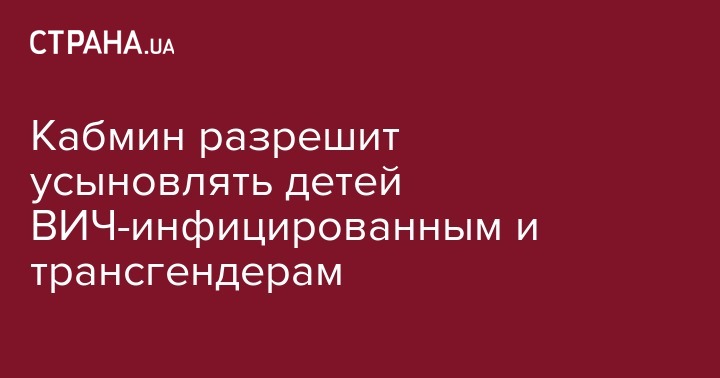 Кабмин утвердил план действий по реализации Нацстратегии в области прав человека на период до 2020 года. В разделе "Создание эффективной системы предотвращения и противодействия дискриминации" планируется внести в приказ Минздрава от 20 августа 2008 года № 479 изменения по устранению дискриминационных запретов по усыновлению детей. Усыновлять детей смогут ВИЧ-положительные люди, людьми с инвалидностью и трансгендеры. Изменения планируют внести до четвертого квартала 2016 года.