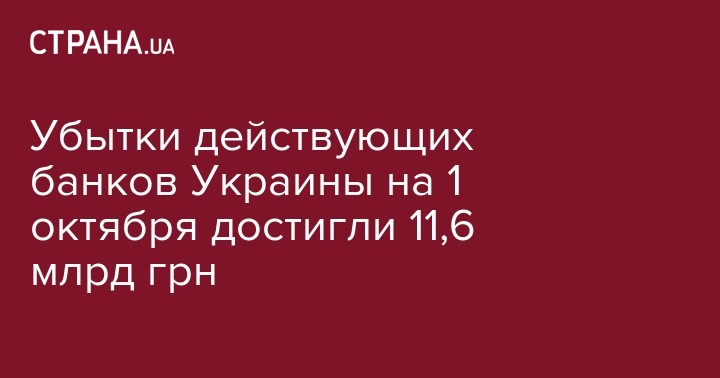 Убытки действующих банков Украины на 1 октября достигли 11,6 млрд грн