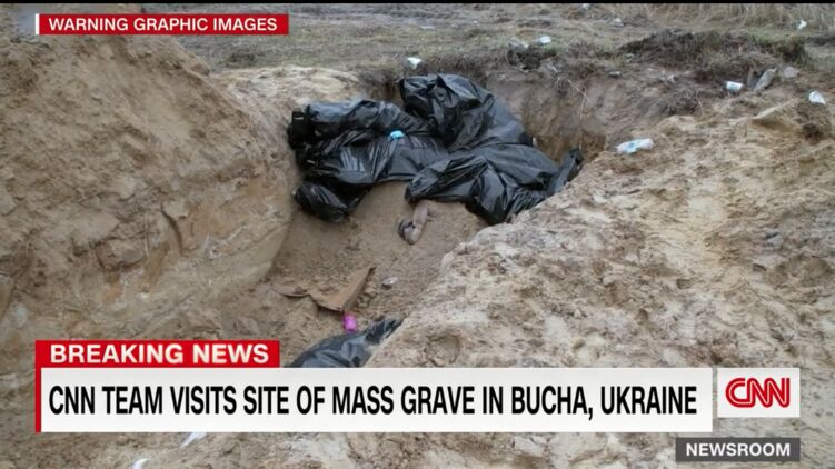 "CNN видел по меньшей мере дюжину тел в мешках для трупов, сваленных в могилу. Некоторые из них уже были частично накрыты", - говорится в материале.