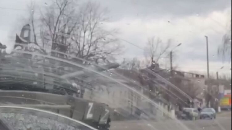 На кадрах видно передвижение техники с опознавательным знаком в виде буквы "Z".