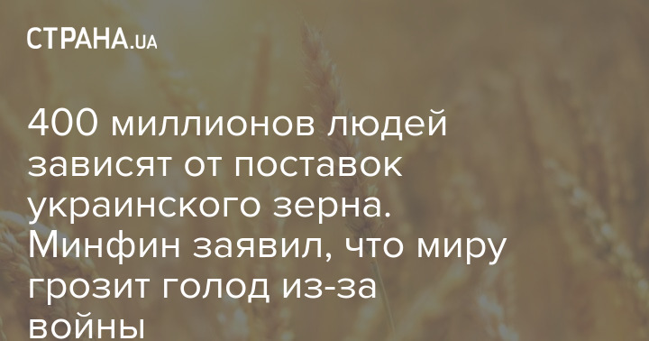 400 миллионов людей зависят от поставок украинского зерна. Минфин заявил, что миру грозит голод из-за войны