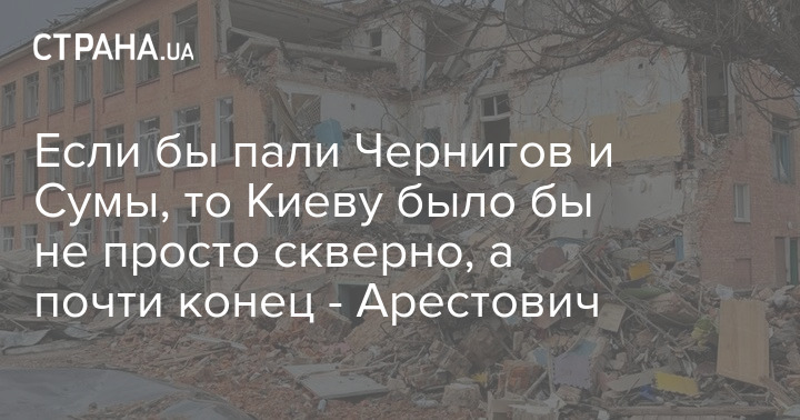 "Если бы пали Чернигов и Сумы, то Киеву бы пришлось очень скверно", - об этом заявил советник главы Офиса президента Алексей Арестович. Об этом он написал в своем Telegram по итогам поездки по деоккупированным регионам.